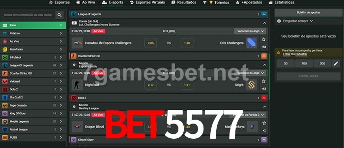 A aposta Bet5577 oferece aos jogadores a experiência mais conveniente de apostas em eSports!